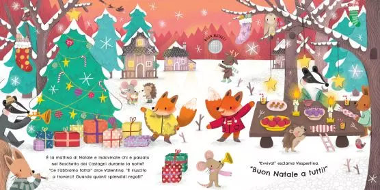 È la vigilia di Natale e tutti gli abitanti del Boschetto dei Castagni si preparano a festeggiare. Tutti. tranne Volpina Valentina. Questo bel libro illustrato si illumina a festa ad ogni pagina e riproduce musiche natalizie ogni volta che si preme un bottone.
